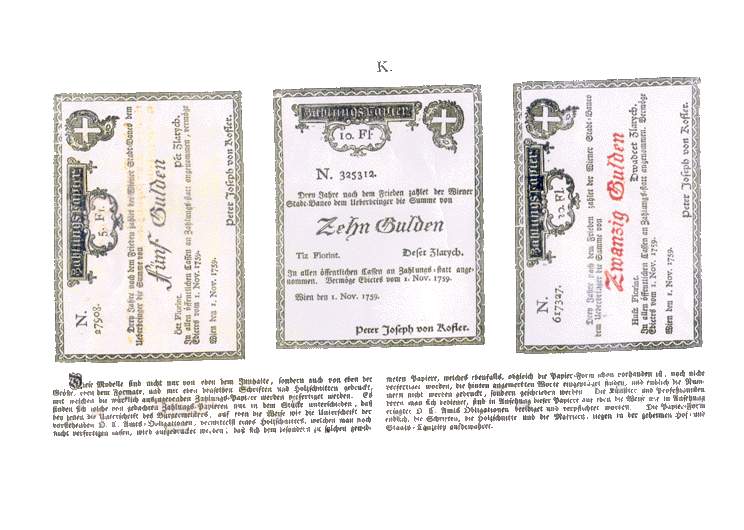 Formuláře 5, 10, 25 Gulden, 1.11. 1759, kompletní, nerozřezané |