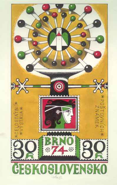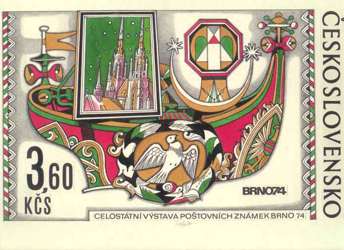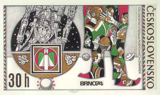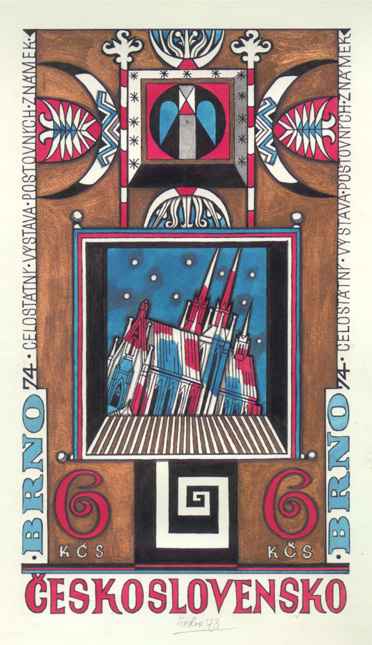 3.60Kčs Brno 1974 od J.Lieslera, karton 18 x 29.5 cm, vhodné na zapaspartování, signováno