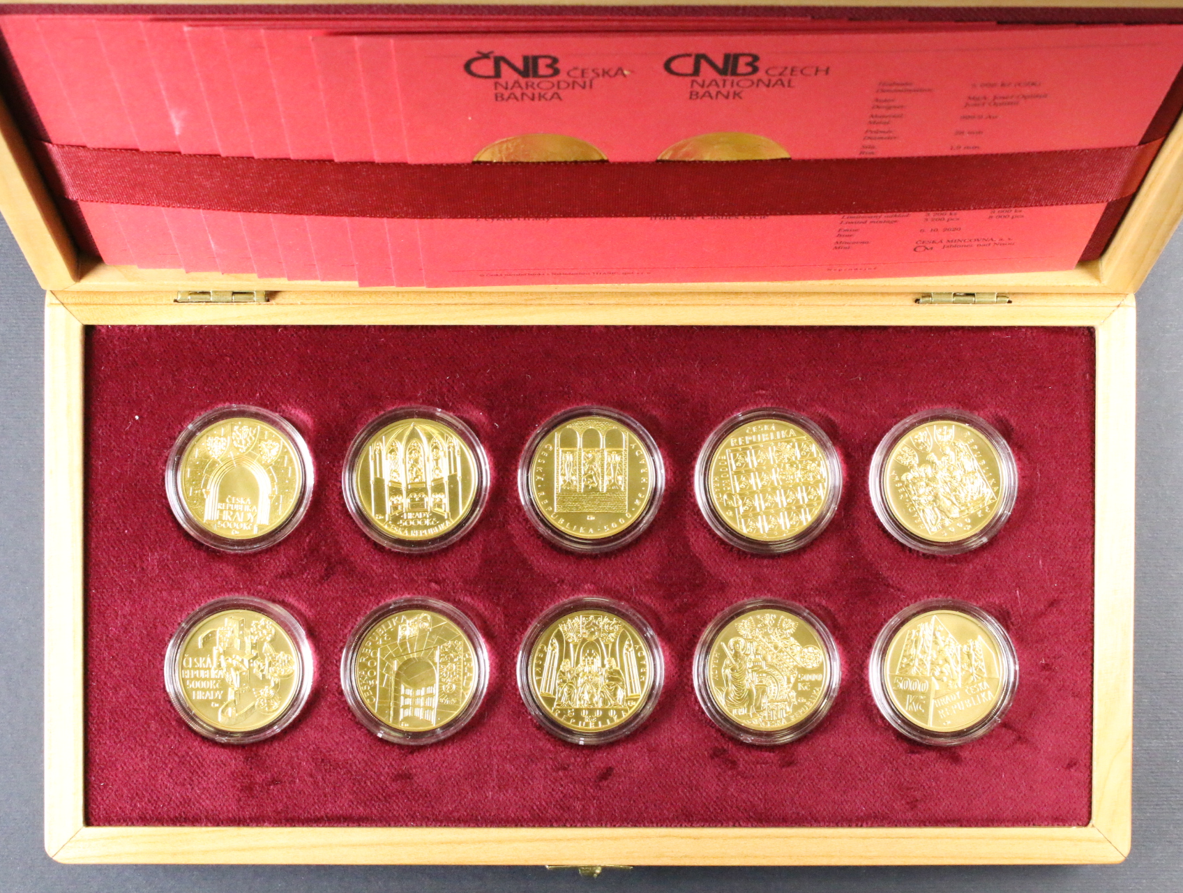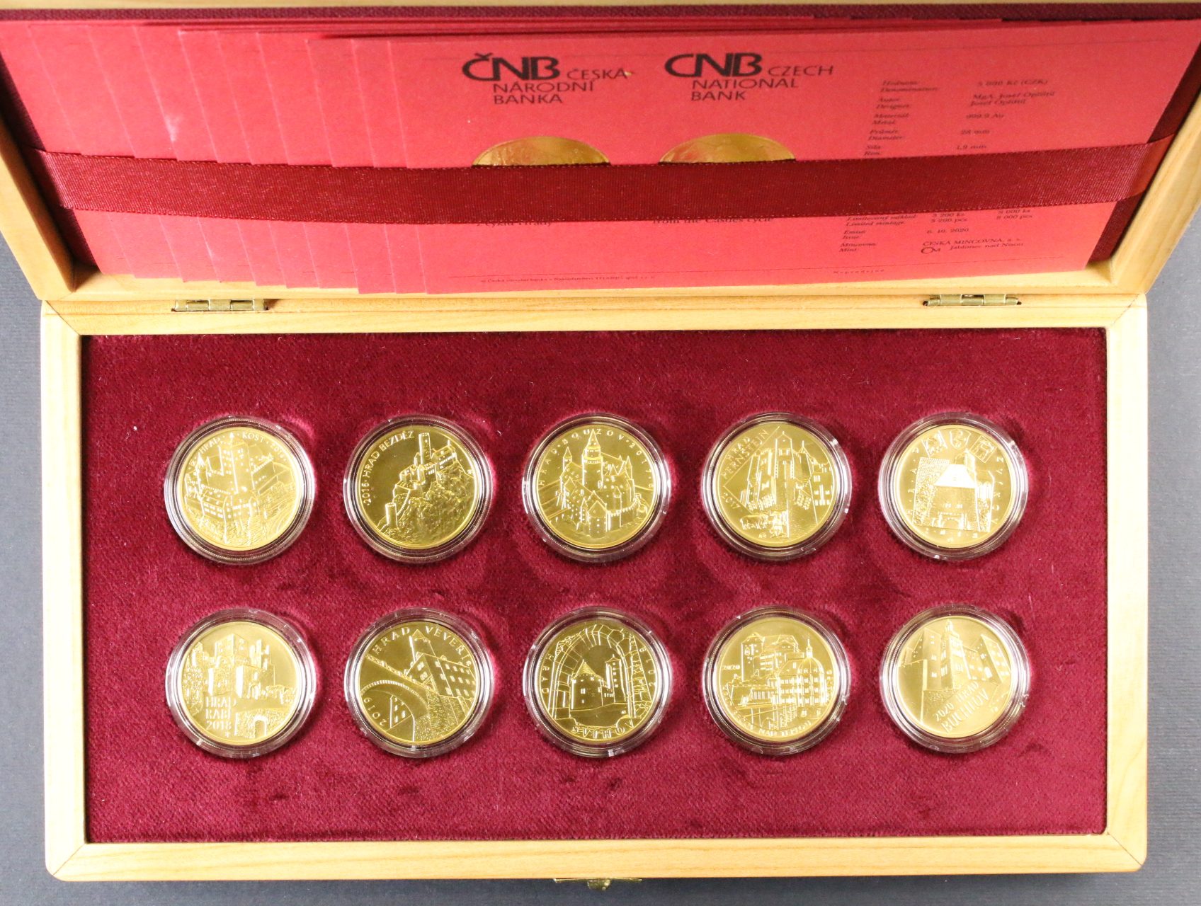 • Sada 10 x 5000 Kč Hrady 2016-2020 - 10x 1/2 OZ, společná dřevěná etue