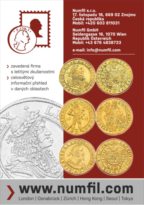 | 90. podzimní aukce poštovních známek | 91. podzimní aukce mincí, papírových platidel, řádů a vyznamenání |